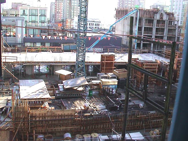 With this technique the elements of the building are constructed in-situ with hollow forms (moulds). These forms are usually built around a skeleton of steel reinforcing wire or bar (rebar). They then have concrete mix poured into them which encases the steelwork. When the concrete cures (sets) the forms are removed leaving the concrete slab.