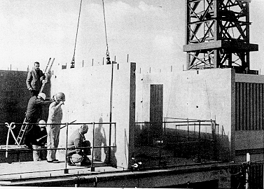 The earliest form of tower block construction was using the Larsen-Nielsen system. This system was developed in Denmark in 1948. The Larsen-Nielson system was “…composed of factory-built, recast concrete components designed to minimize on-site construction work. Walls, floors and stairways are all pre-cast. All units, installed one-story high, are load bearing (System, 1968).” This building technique encompassed the patterns for the panels and joints, the method of panel assembly, and the methods of production of the panels.. In this type of structural system, each floor was supported by the load bearing walls directly beneath it. Gravity load transfer occurred only through these load-bearing walls. This wall and floor system fitted together in slots. These joints were then bolted together and filled with dry pack mortar to secure the connection.