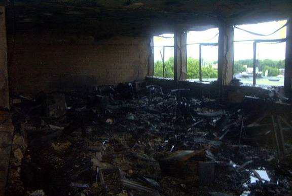 At about this time, The Station Officer at the command point in the street was interrupted by a bang; he looked up and saw that the fire had broken out of a window on the 7th Floor. He immediately made Pumps Four, the time was 20:53hrs. Crews had been in attendance for no more than 6 Minutes.